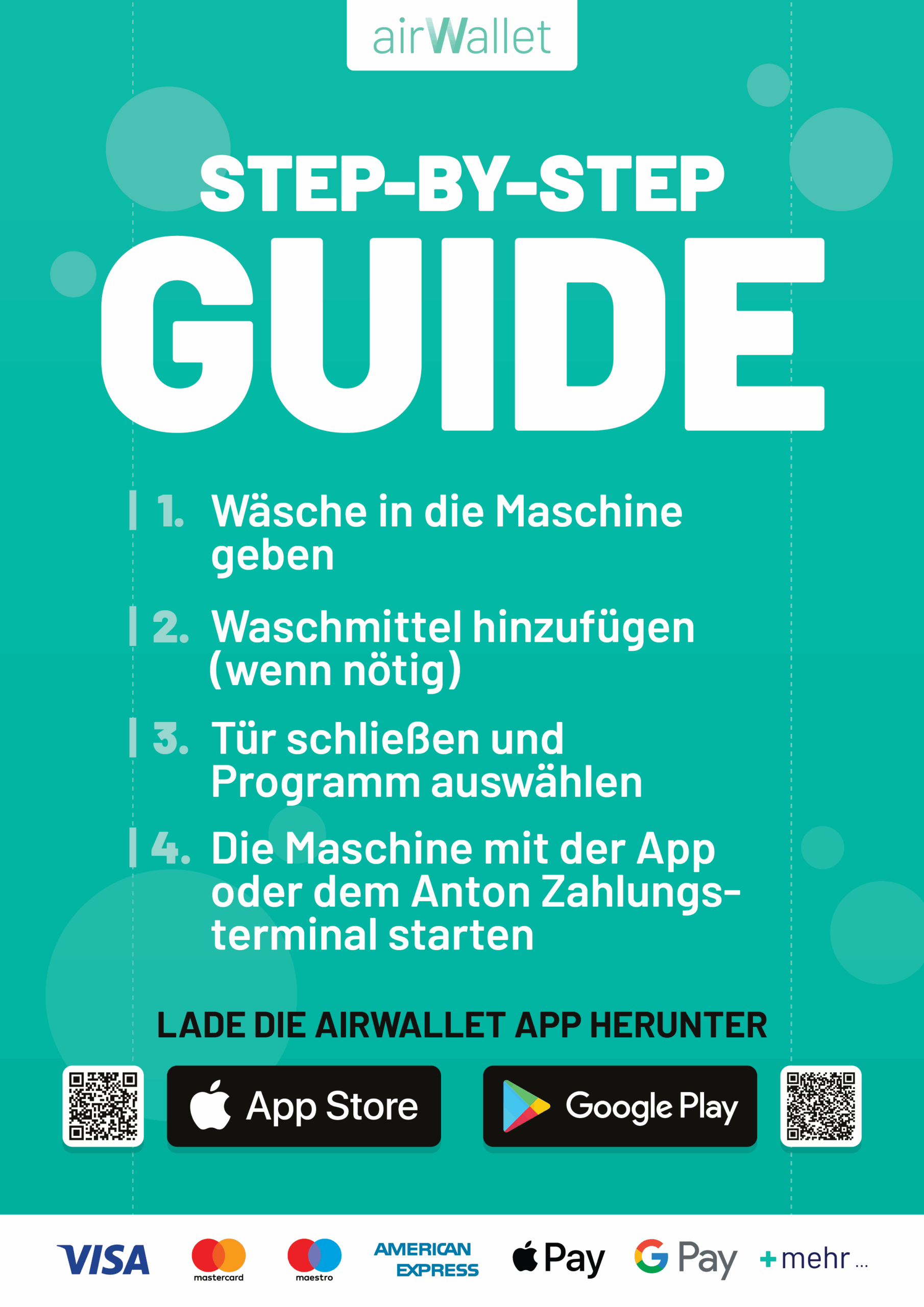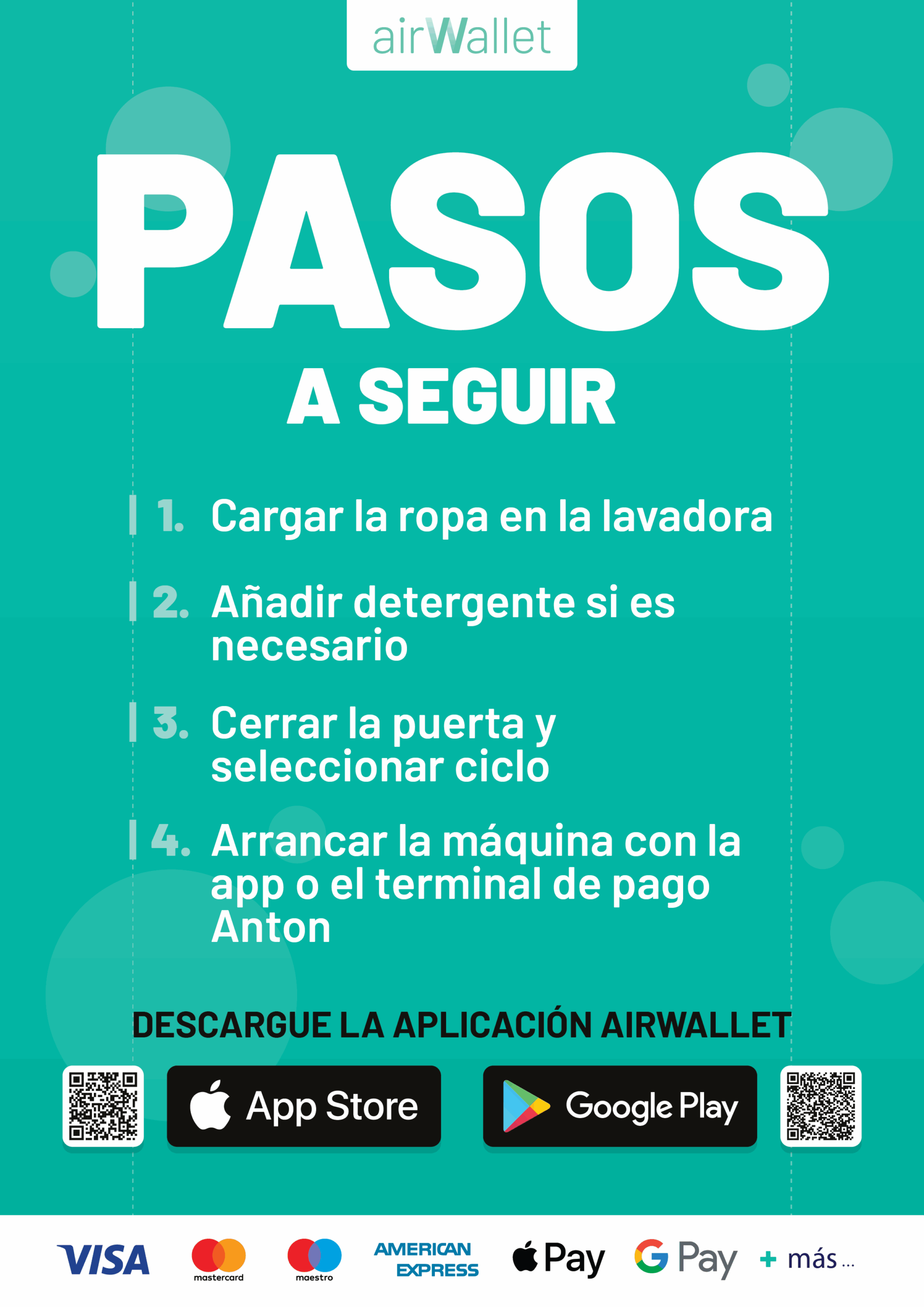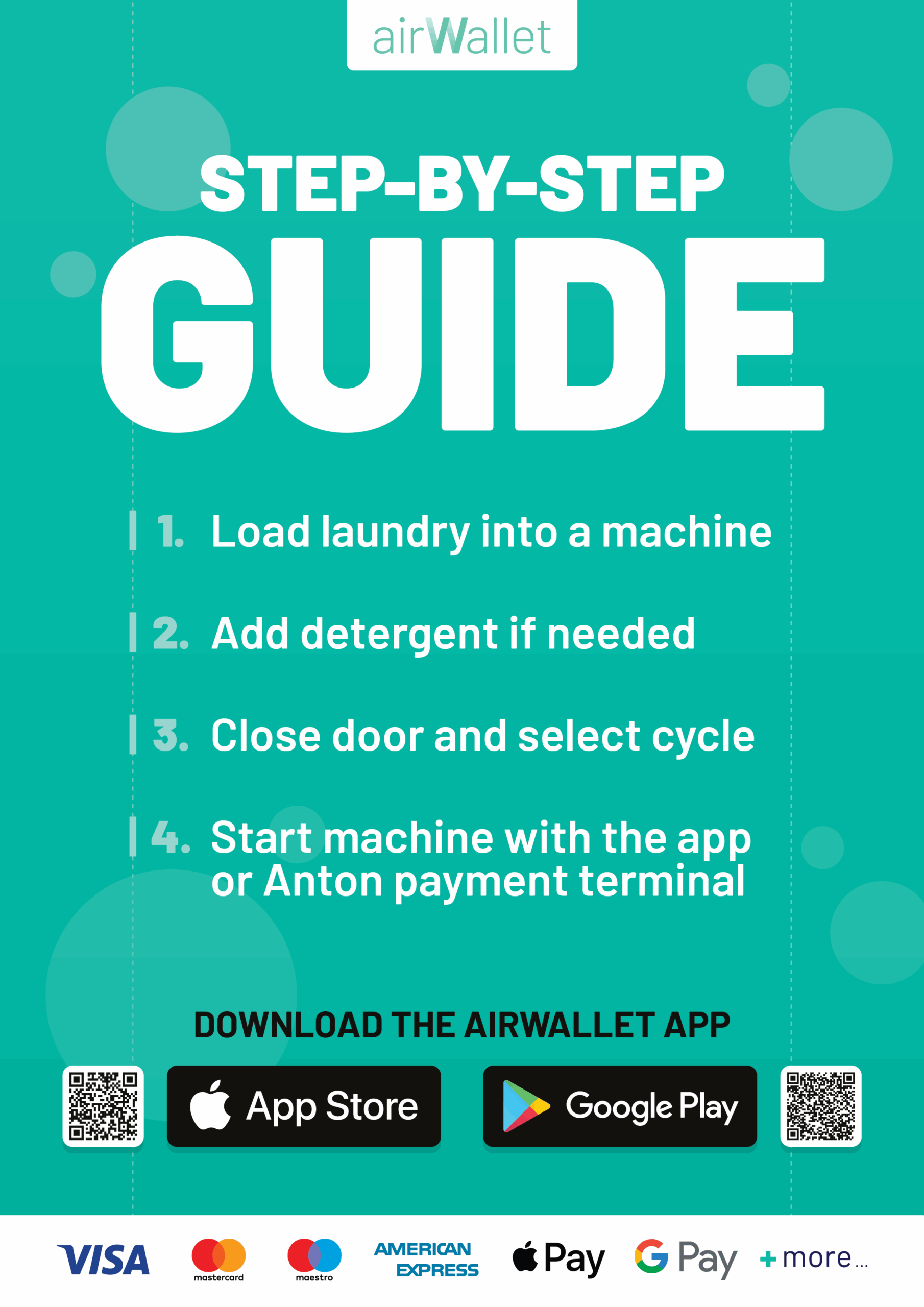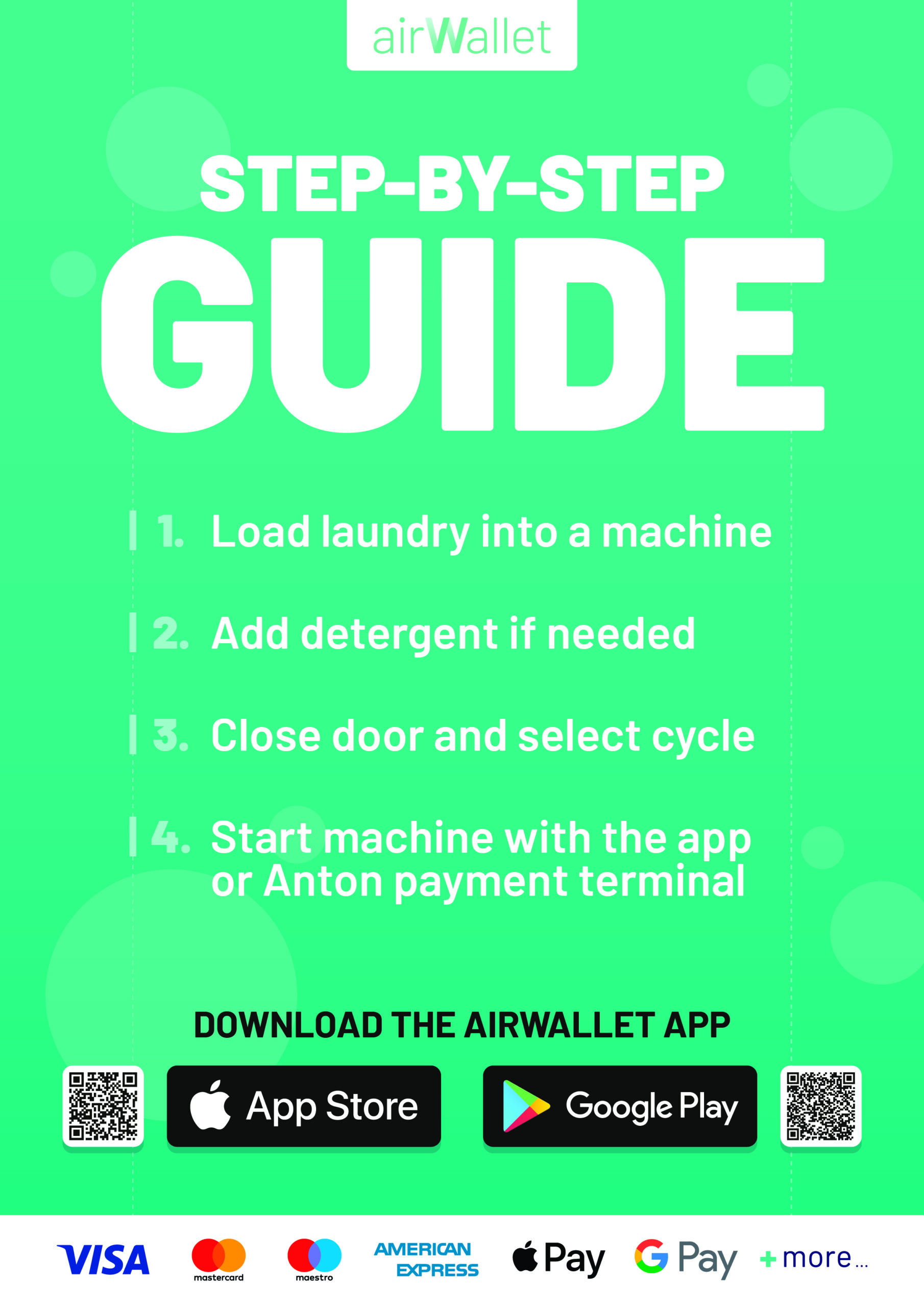 Add this step-by-step laundry poster guide in your laundry room to assist customers in following the correct process while using the Airwallet payment solution.