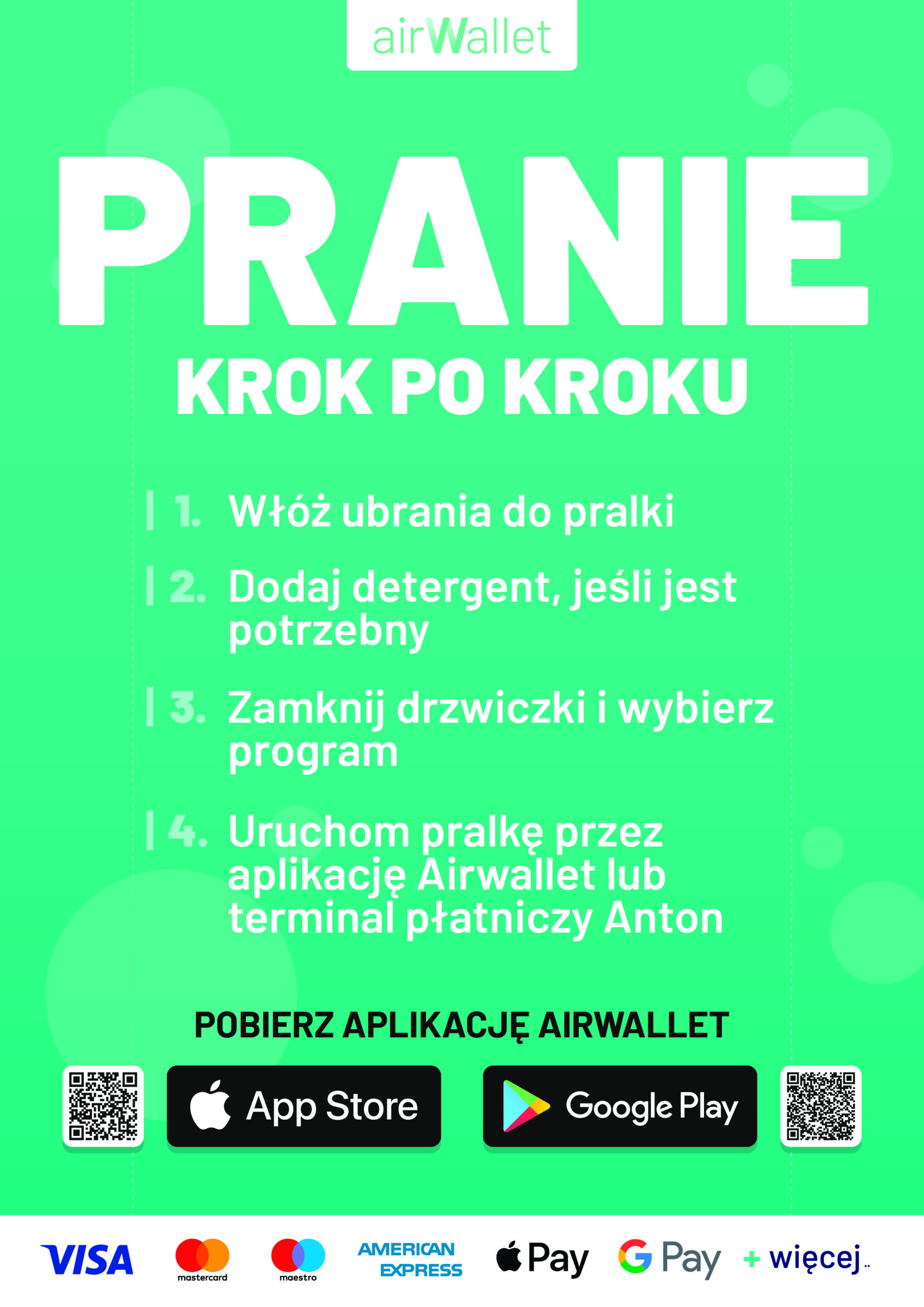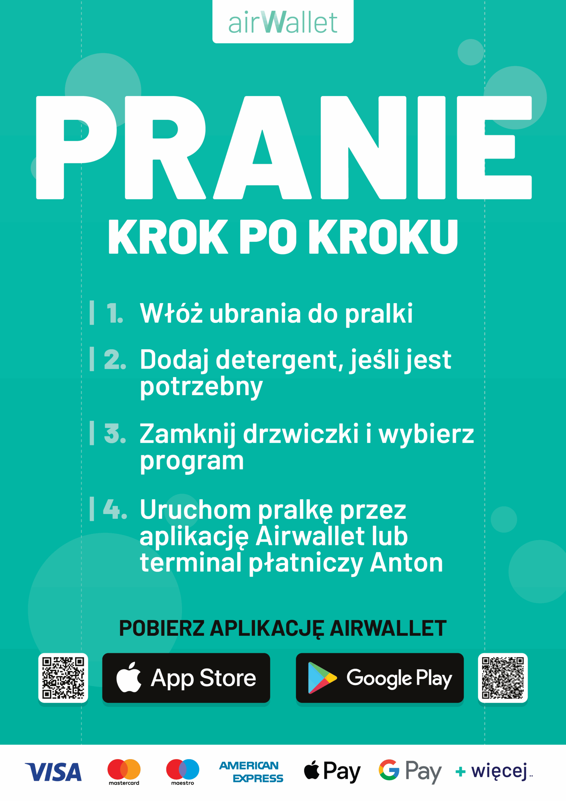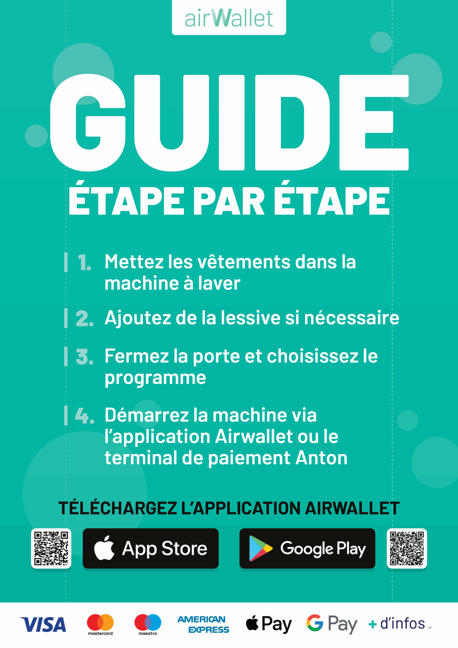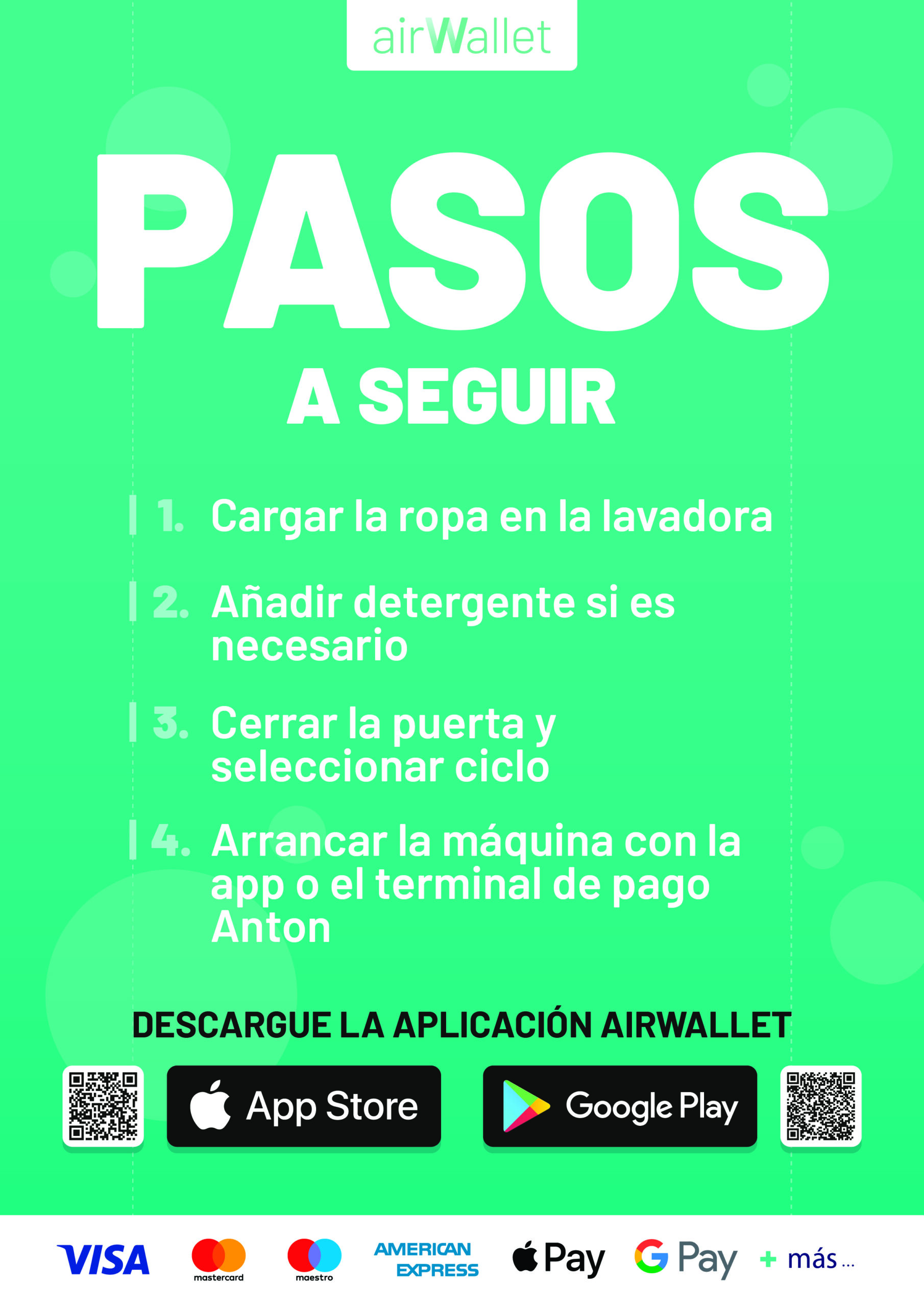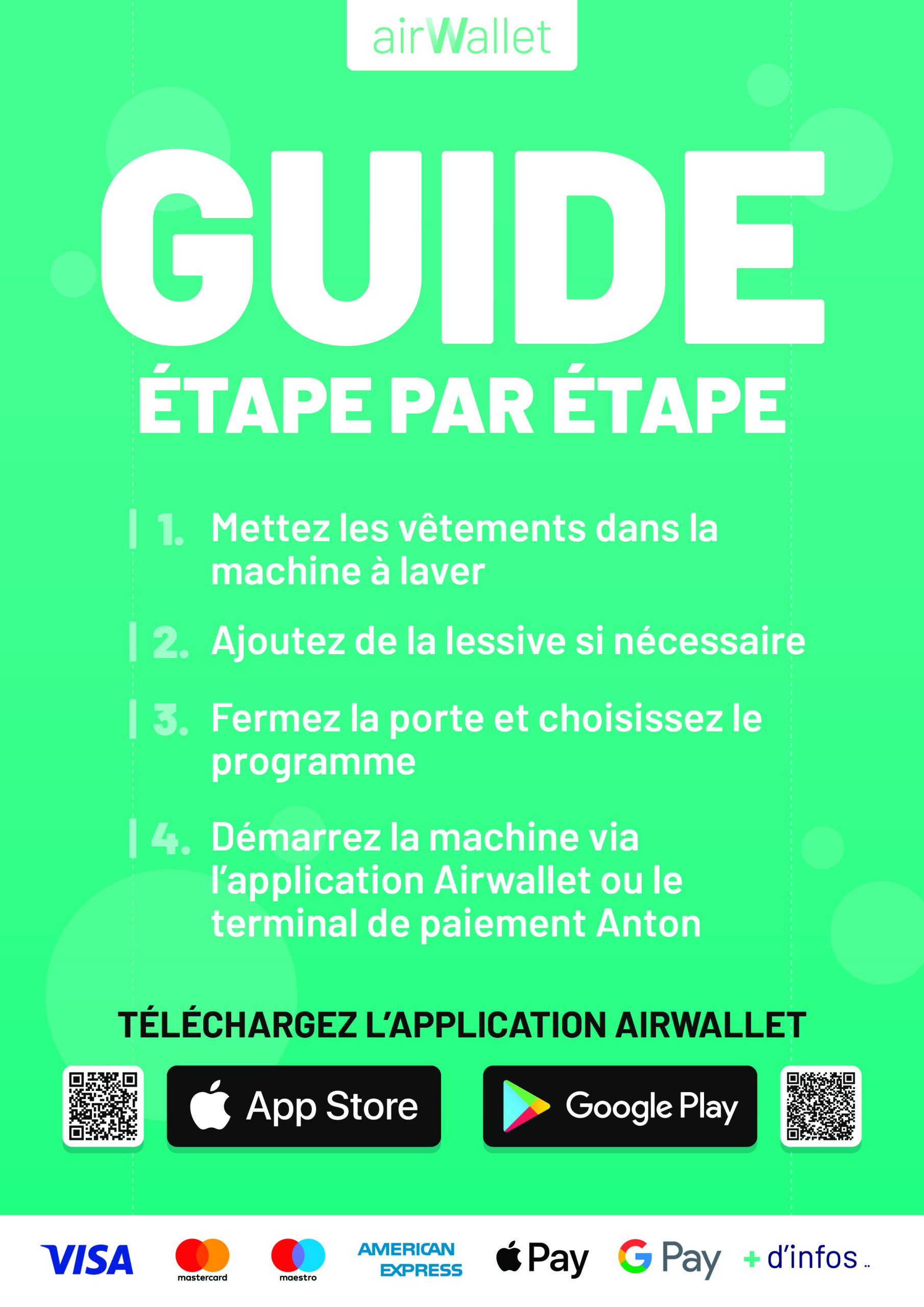 Add this step-by-step laundry poster guide in your laundry room to assist customers in following the correct process while using the Airwallet payment solution.